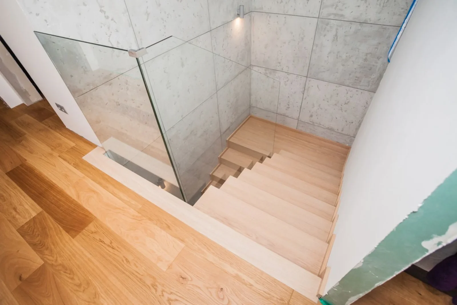 Schody dywanowe z balustradą szklaną. Katowice Ligota